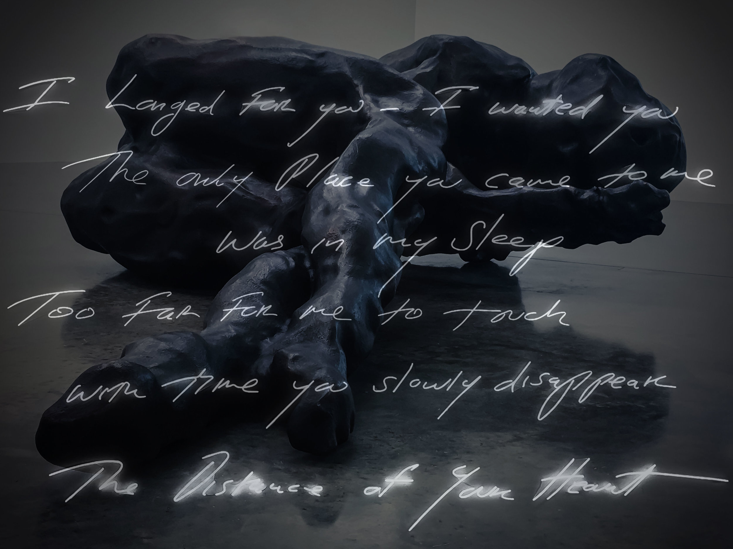 Photographs from Tracey Emin Exhibition at The White Cube Bermondsey. “When I Sleep, 2018 (45 7/8 x 170 7/8 x 104 5/16 in)”. “I Long For You, 2019 (121 ½ x 185 1/16 in).”